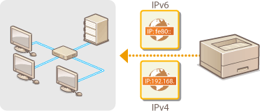 توصيل الجهاز بشبكة يحتاج إلى عنوان IP فريد في تلك الشبكة. وهناك نوعان من عناوين IP: IPv4 وIPv6. استخدم النوع الملائم لبيئة الشبكة الخاصة بك. ولاحظ أنه قبل أن تتمكن من استخدام عنوان IPv6، تحتاج أولاً إلى أن تقوم بتكوين عنوان IPv4 بشكل صحيح.