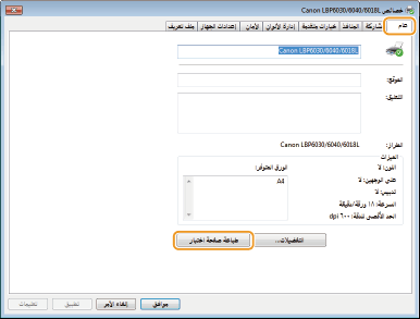 في علامة تبويب [عام]، ثم انقر فوق [طباعة صفحة اختبار].