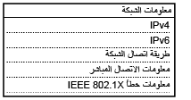يعرض إعدادات الشبكة مثل عنوان IP الخاص بالجهاز وحالته مثل حالة اتصالات شبكة LAN اللاسلكية.