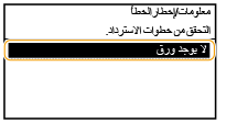 في بعض الحالات عند حدوث خطأ ما، يتم عرض إرشادات حول كيفية التعامل مع الخطأ. اتبع الإرشادات التي تظهر على الشاشة لحل المشكلة. وتكون الشاشة المعروضة عند حدوث انحشار ورق كما هو موضح على النحو التالي كمثال (