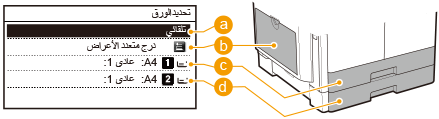 يجب أن تحدد أولاً حجم ونوع الورق الذي تم تحميله في مصدر الورق.