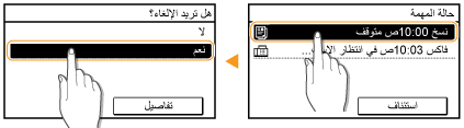 فقد تم مسح المستندات ضوئيًا وفي انتظار طباعتها. حدد مستند النسخ للإلغاء.