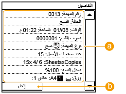 يتم عرض عدد النُسخ والإعدادات والتفاصيل الأخرى. إذا كنت لا تريد سوى التحقق من التفاصيل دون إلغاء عملية النسخ، فاضغط على