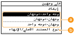 لا تتوفر ميزة <على وجهين> عند استخدام <كتاب > صفحتان> أو <نسخ بطاقة الهوية>.