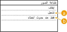 حدد <تشغيل> أو <فقط عند حدوث الخطأ>