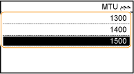 في معظم شبكات Ethernet، يكون الحجم الأقصى للحزمة التي يمكن إرسالها ١٥٠٠ بايت. وتشير الحزمة إلى جزء من البيانات التي يتم من خلالها تقسيم البيانات الأصلية قبل إرسالها. وقد تختلف وحدة الإرسال القصوى (MTU) في كل شبكة. قم بتغيير إعدادات الجهاز إذا تطلب الأمر. للحصول على المزيد من المعلومات، اتصل بمسؤول الشبكة الخاص بك.