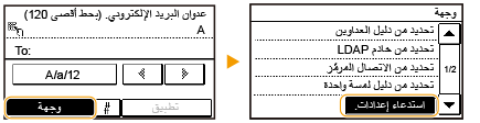 يمكنك تحديد أي وجهة من بين الوجهات الثلاثة السابقة. عندما تحدّد وجهة مستخدمة من قبل، يقوم الجهاز أيضًا بضبط نفس إعدادات المسح الضوئي مثل الكثافة التي استخدمتها آخر مرة تم فيها إرسال مستندات إلى تلك الوجهة.