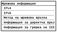 Показва мрежовите настройки, като напр. IP адреса на устройството, и състоянието, като напр. работата на безжичната LAN комуникация.