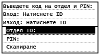 Когато се изведе екранът за вход, следвайте процедурата по-долу, за да въведете код на отдел и PIN код.