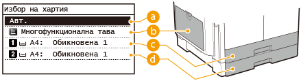 Изберете източника на хартия (
