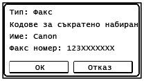 Можете директно да въведете трицифрения номер (код за съкратено набиране) за дадена дестинация, за да изпратите факс.