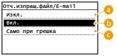 Изберете, за да се отпечатва отчет за изпращане на имейл/файл само при възникване на грешка при изпращане.