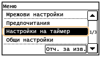 Всички настройки на таймера са поместени с кратки описания в списъка. Настройките по подразбиране са отбелязани с кръстче (