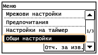 Всички настройки за работа с касетата за хартия и метода за подаване на хартия са поместени с кратки описания в списъка. Настройките по подразбиране са отбелязани с кръстче (