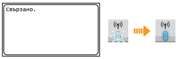 Когато настройката е завършена, се показва екранът по-долу и приблизително 2 секунди по-късно светва индикаторът за Wi-Fi.