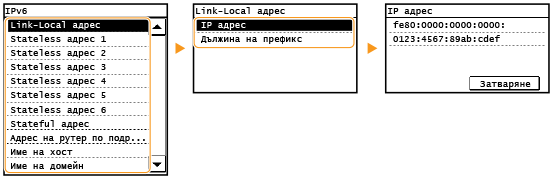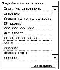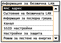 Можете да отпечатате списък с текущите мрежови настройки. Спис. с данни на потр./Списък с данни за системния оператор