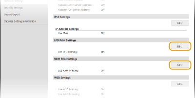 Щракнете върху [Edit] в [LPD Print Settings] или [RAW Print Settings].