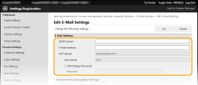 Ако конфигурирате SMTP удостоверяване (SMTP AUTH), идентифициране на потребителите чрез потребителско име и парола ще се извършва в момента на изпращане на имейл.