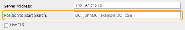 Когато задавате позицията, въведете "DC=", последвано от име на хост (отделен с точки символен низ в името на домейна от Active Directory), и разделете всеки от въведените елементи със запетая. Ако името на домейна например е "john.example.com", въведете "DC=john,DC=example,DC=com."