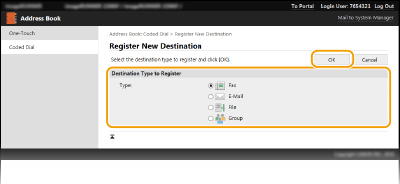 Изберете [Destination Type to Register] и щракнете върху [OK].