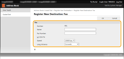 За да запаметите дестинация за факс (imageRUNNER 2206iF)