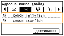 Конфигуриране на машината за сканиране към споделени папки Достъпни дестинации за споделени папки са само запаметените в адресната книга. За да зададете дестинация чрез адресната книга, трябва предварително да запаметите дестинациите за споделени папки.
