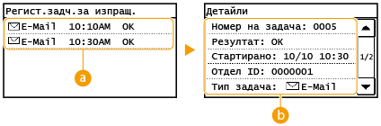 Когато за <Извеждане на регистър на задачи> е зададена настройка <Изкл.>, не можете да проверявате регистрите за изпратени документи. Извеждане на регистър на задачи
