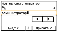 Въведете до 32 символа за име на системния оператор и докоснете <Прилагане>. Въвеждане на текст