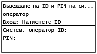 Задайте <Системен оператор ID> и след това задайте <Системен оператор PIN>.