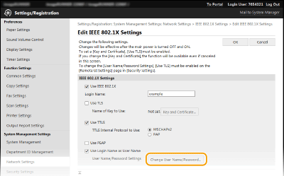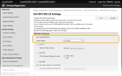 Поставете отметка за [Use IEEE 802.1X], въведете потребителско име в текстовото поле [Login Name] и задайте необходимите настройки.
