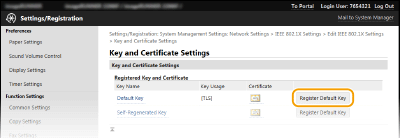 Щракнете върху [Register Default Key] отдясно на двойката ключове, която желаете да използвате за автентикация на клиента.