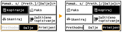 Dodirnite <Prethodno> ili <Dalje> za pomak gumba pa dodirnite <Primijeni>.