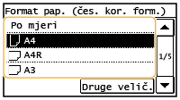Dodirnite <Odaber. često upotrebljavane formate papira>.