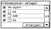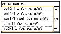 Možete podesiti da uređaj na zaslonu za odabir prikazuje isključivo veličine često korištenog papira.