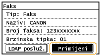 Korisničko ime i broj faksa ili adresa e-pošte registrirani na LDAP poslužitelju za odabranog korisnika registrirani su u adresaru.