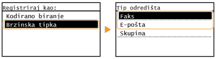 <Postavke faksa>. Međutim postavke zadane u <Adresar> omogućene su za detaljne postavke odredišta registriranih u adresaru. |