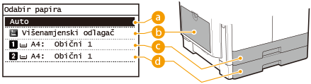 Odaberite izvor papira (