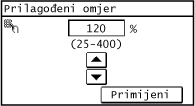 ili pomoću numeričkih tipki, a zatim pritisnite <Primijeni>. Možete postaviti bilo koji omjer kopiranja od 25 do 400% u koracima od 1%.