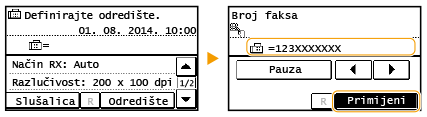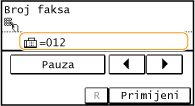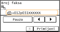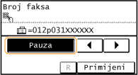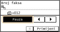 Dodirnite postavku <Pauza> da biste ako je potrebno na kraj broja faksa umetnuli pauzu.