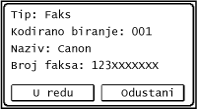 <Da>.Ako ste u 2. koraku naveli grupno biranje, na zaslonu se prikazuje "XX odredište/-šta". Dodirom stavke <Broj odredišta > prikazuju se odredišta registrirana u grupi.