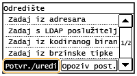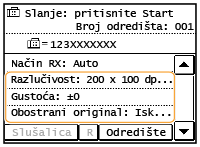 Dodirnite <Da>.Ako ste u 2. koraku naveli grupno biranje, na zaslonu se prikazuje "XX odredište/-šta". Dodirom stavke <Broj odredišta > prikazuju se odredišta registrirana u grupi.