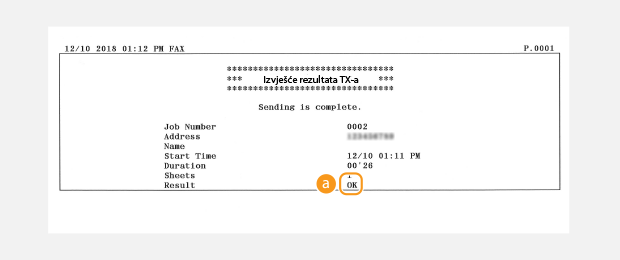 Izvješće o rezultatu TX-a faksa (imageRUNNER 2206iF)