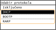 Dodirnite <DHCP>, <BOOTP> ili <RARP>.