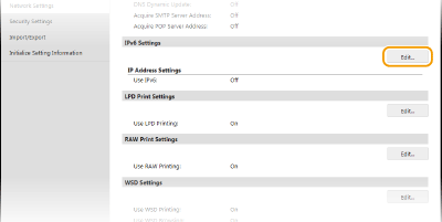 IPv6 adrese uređaja možete konfigurirati putem sučelja Remote UI (korisničko sučelje za daljinski pristup). Prije postavljanja IPv6 adresa provjerite postavke IPv4 adresa (Prikaz postavki protokola IPv4). Morate točno postaviti IPv4 adrese da biste mogli koristiti IPv6 adrese. Imajte na umu da funkcija skeniranja koja koristi upravljački program skenera ili MF Scan Utility (Uslužni program za skeniranje MF) nije dostupna u okruženju IPv6. Uređaj može koristiti najviše devet od sljedećih IPv6 adresa: