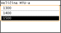 U većini Ethernet mreža maksimalna veličina paketa koji se može poslati iznosi 1500 bajtova. Paket su manje količine podataka na koje se izvorni podaci dijele prije slanja. Maksimalna jedinica za prijenos (MTU) razlikuje se od mreže do mreže. Promijenite postavke uređaja prema potrebi. Dodatne informacije zatražite od mrežnog administratora.