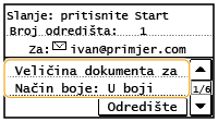 Kada navedete više odredišta, drugo i sva sljedeća odredišta moraju biti odredišta koja su registrirana u adresaru. I u slučaju kopija i skrivenih kopija možete navesti samo odredišta koja su registrirana u adresaru. Da biste upotrebljavali adresar, morate unaprijed provesti obavezan postupak registracije.