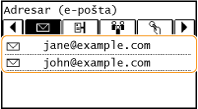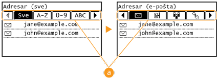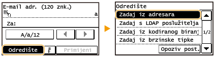 Adresar omogućuje definiranje odredišta odabirom s popisa registriranih odredišta ili pretraživanjem po imenu za odredišta s imenima primatelja.