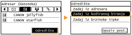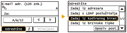 Ako ste u 2. koraku odabrali grupno biranje, na zaslonu se prikazuje <Broj odredišta >. Kada dodirnete tu stavku, prikazuju se odredišta registrirana u grupi.