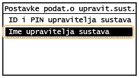 Unesite najviše 32 znaka kao naziv upravitelja sustava, a zatim dodirnite <Primijeni>. Unos teksta