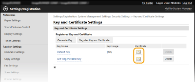 [Key and Certificate Settings] ili [CA Certificate Settings].